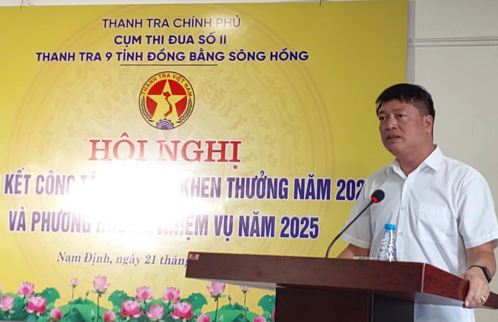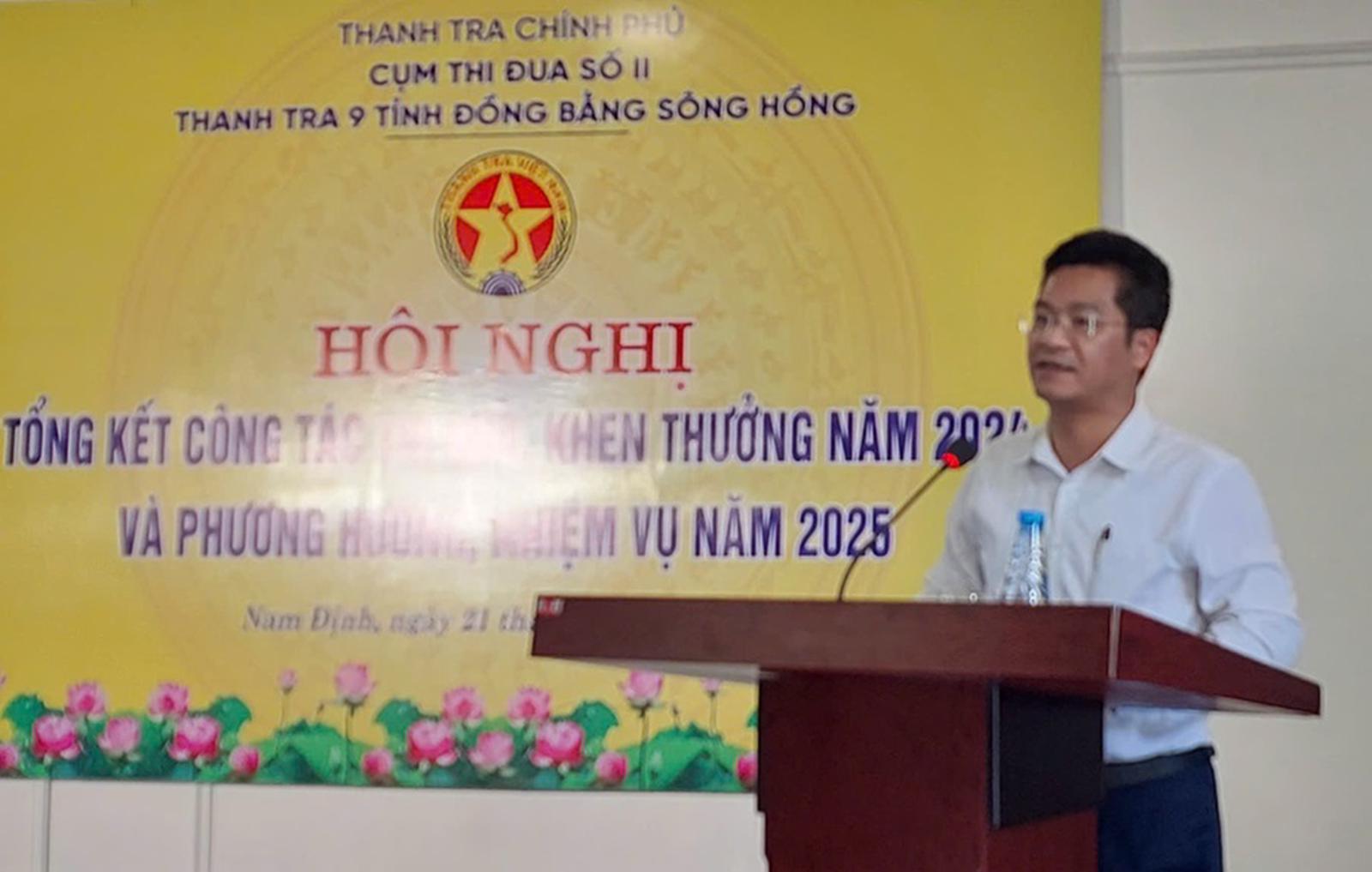 Đại diện Thanh tra tỉnh Nam Định, Cụm trưởng Cụm thi đua số II đã trình bày báo cáo tổng kết công tác thi đua khen thưởng năm 2024 và phương hướng nhiệm vụ năm 2025, trong đó nêu bật những kết quả đạt được của các đơn vị của Cụm trong việc thực hiện giao ước thi đua năm 2024.