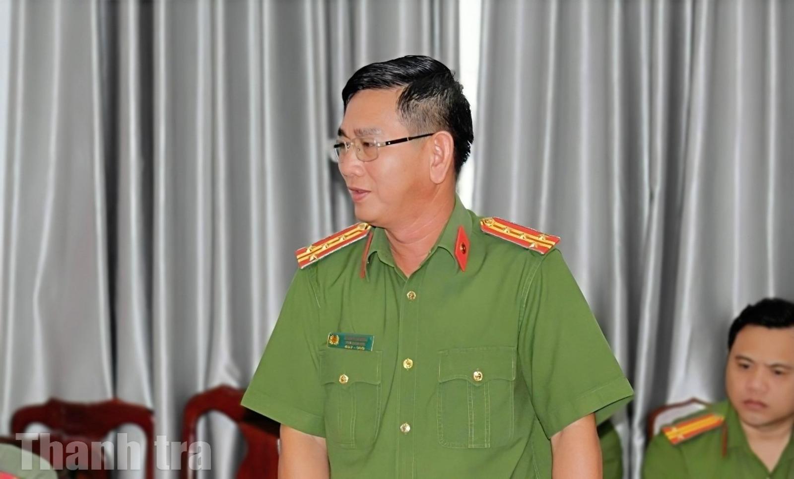 Đại tá Trần Văn Cung, Phó Giám đốc Công an tỉnh An Giang phát biểu tại hội nghị. Ảnh: PV