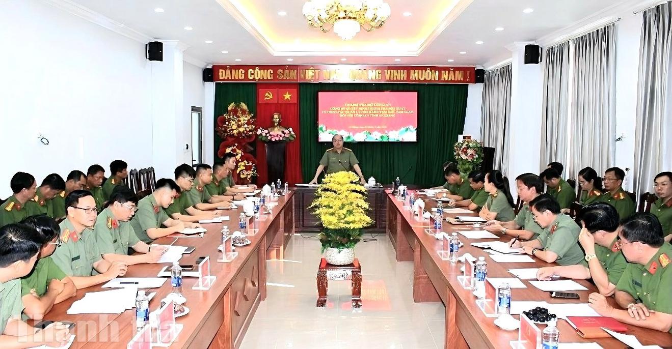 Sau khi nghe đại diện Công an tỉnh An Giang báo cáo tóm tắt tình hình, Đại tá Trần Văn Thư đã điều hành thảo luận và phát biểu kết luận, chỉ đạo.