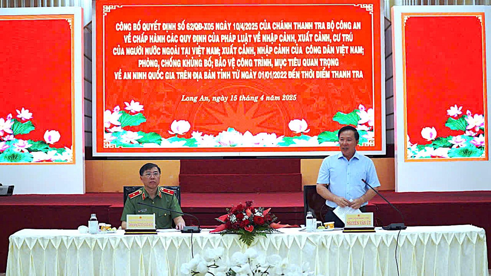 (Thanh tra) - Ngày 15/4/2025, tại Long An, Thanh tra Bộ Công an tổ chức công bố quyết định thanh tra việc chấp hành các quy định của pháp luật đối với UBND tỉnh Long An.