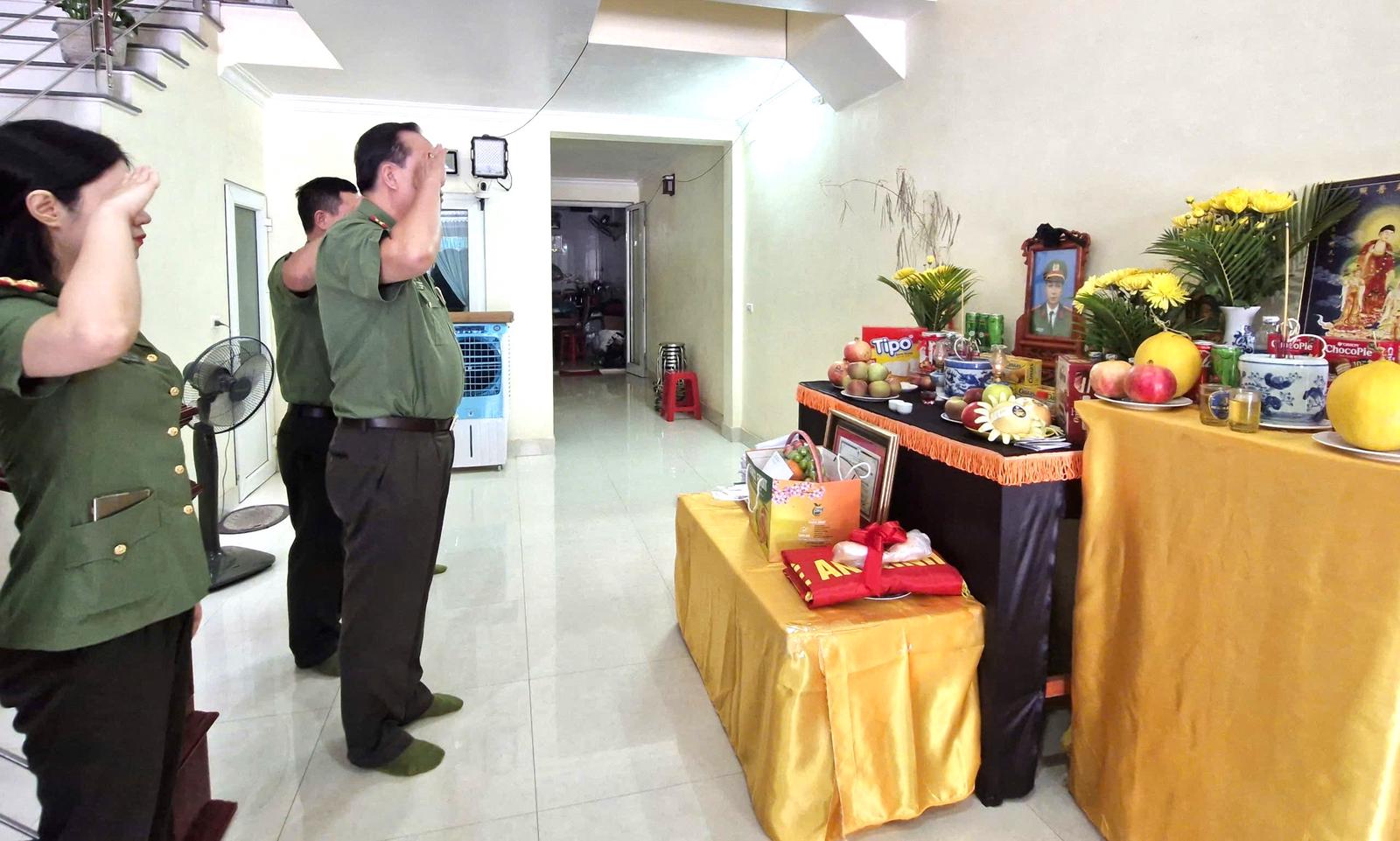 Đoàn công tác đã đến thắp hương, chia buồn với gia đình Trung tá Trần Quốc Hoàng, cán bộ Phân trại số 2, Trại giam Quảng Ninh, đã tận tụy, hy sinh khi đang làm nhiệm vụ di dời các phạm nhân tránh lũ quét do ảnh hưởng của bão Yagi. Ảnh: Hoàng Nam