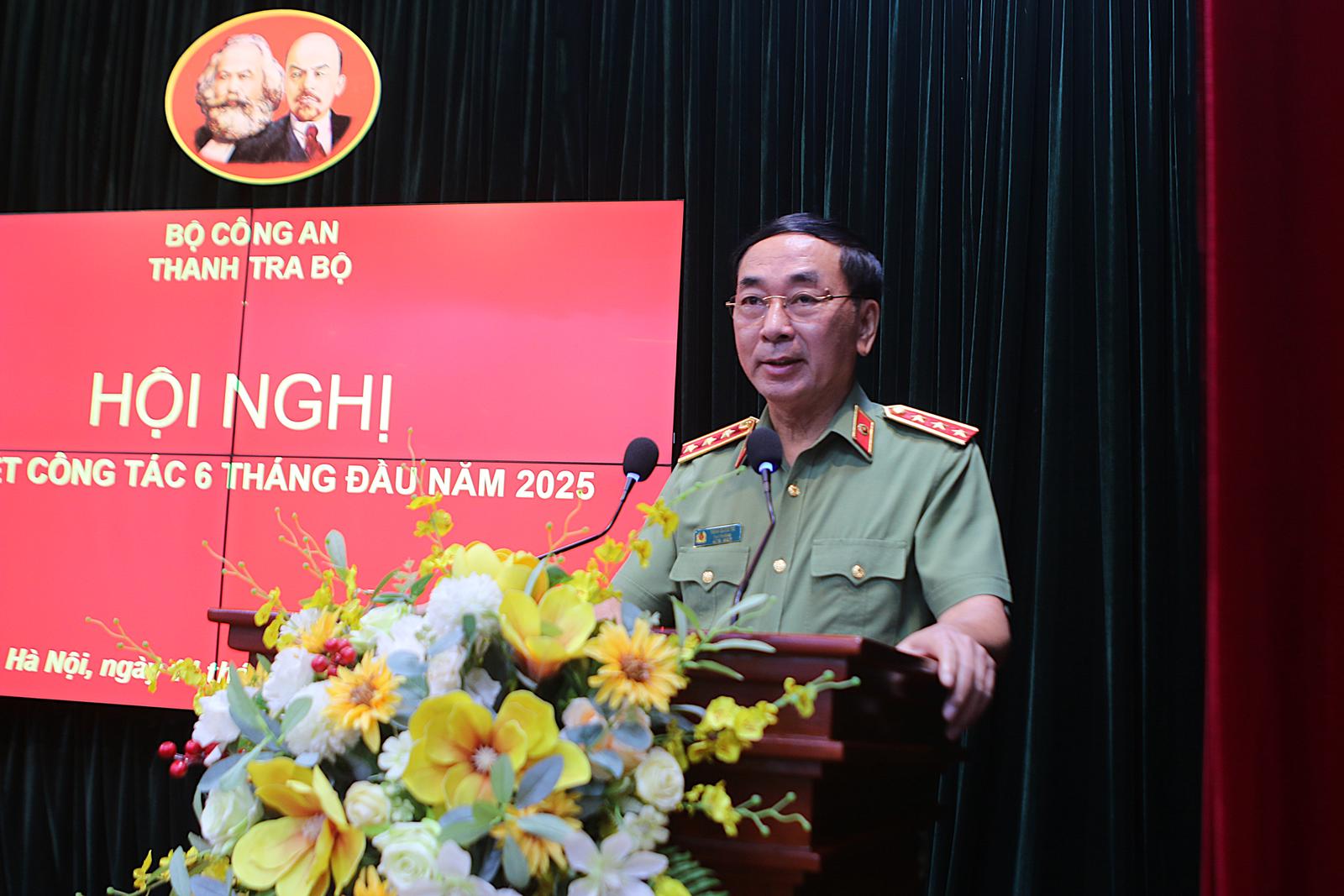 Phát biểu chỉ đạo tại hội nghị, Thượng tướng Trần Quốc Tỏ, Thứ trưởng Bộ Công an, ghi nhận những kết quả, thành tích chung của lực lượng CAND có sự đóng góp rất quan trọng, tích cực của lực lượng Thanh tra CAND nói chung và Thanh tra Bộ nói riêng. Các đồng chí đã có nhiều nỗ lực, cố gắng, chủ động, sáng tạo trong công tác, hoàn thành xuất sắc nhiệm vụ chính trị được giao. Các nội dung báo cáo được chuẩn bị chu đáo, đã nêu rất cụ thể kết quả đạt được; đồng thời, các ý kiến phát biểu đều thẳng thắn, trách nhiệm, đề xuất các giải pháp góp phần nâng cao chất lượng, hiệu quả công tác lãnh đạo, chỉ đạo các mặt công tác 6 tháng cuối năm 2025.