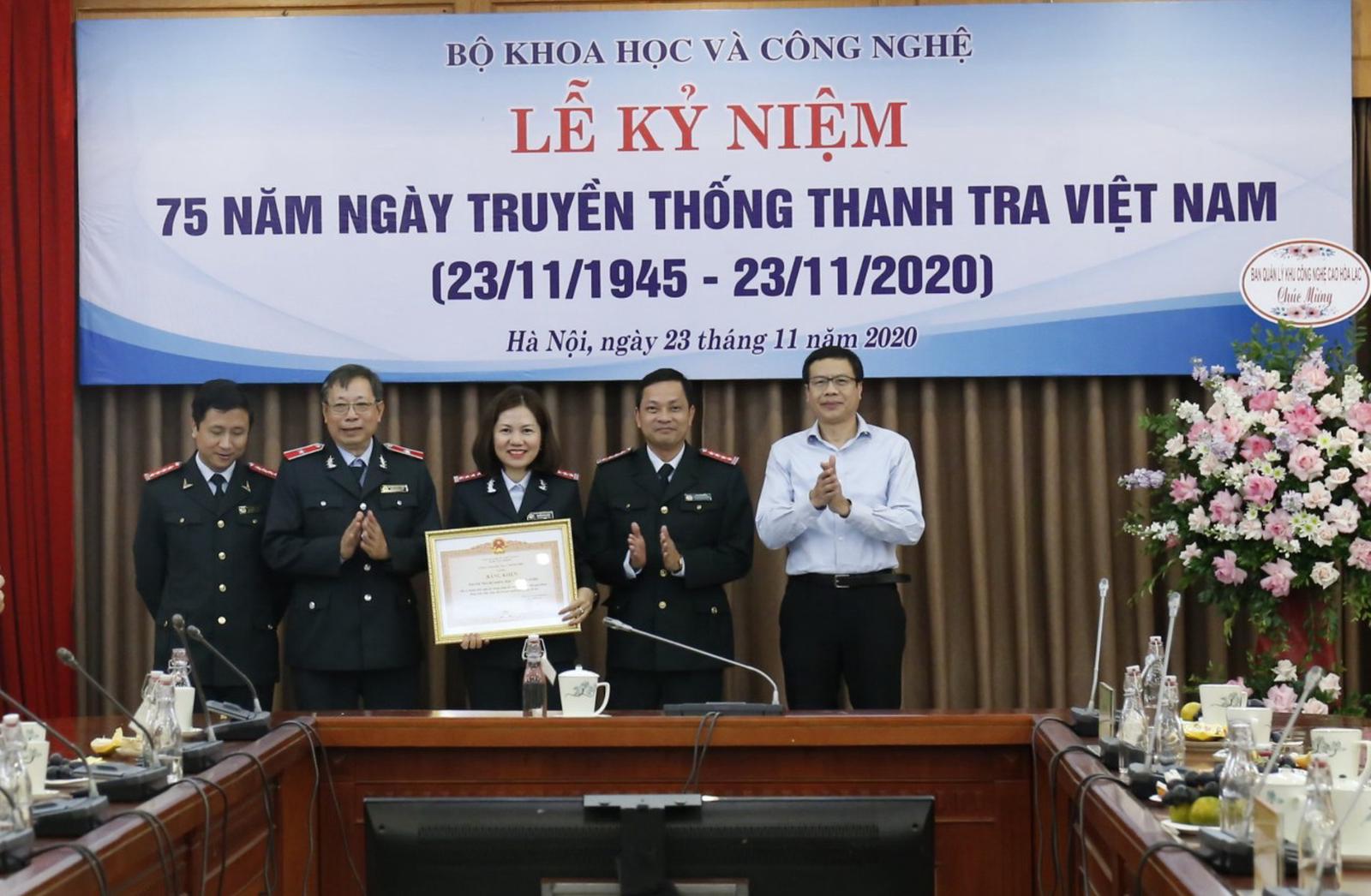 Tại buổi lễ, lãnh đạo Bộ Khoa học và Công nghệ đã trao Bằng khen của Thanh tra Chính phủ cho Thanh tra Bộ vì đã có thành tích xuất sắc trong công tác xây dựng văn bản quy phạm pháp luật; tiếp công dân và giải quyết khiếu nại, tố cáo.