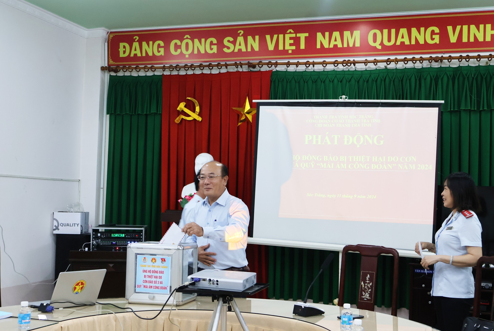 Cũng trong chiều ngày 11/9, tại Thanh tra tỉnh Sóc Trăng, lãnh đạo Thanh tra tỉnh, Ban Chấp hành Công đoàn, Ban Chấp hành Chi đoàn Thanh tra tỉnh đã tổ chức phát động ủng hộ đồng bào bị thiệt hại do cơn bão số 3 và Quỹ “Mái ấm Công đoàn” năm 2024 đến toàn thể cán bộ, công chức, người lao động, công đoàn viên, đoàn viên Chi đoàn Thanh tra tỉnh.