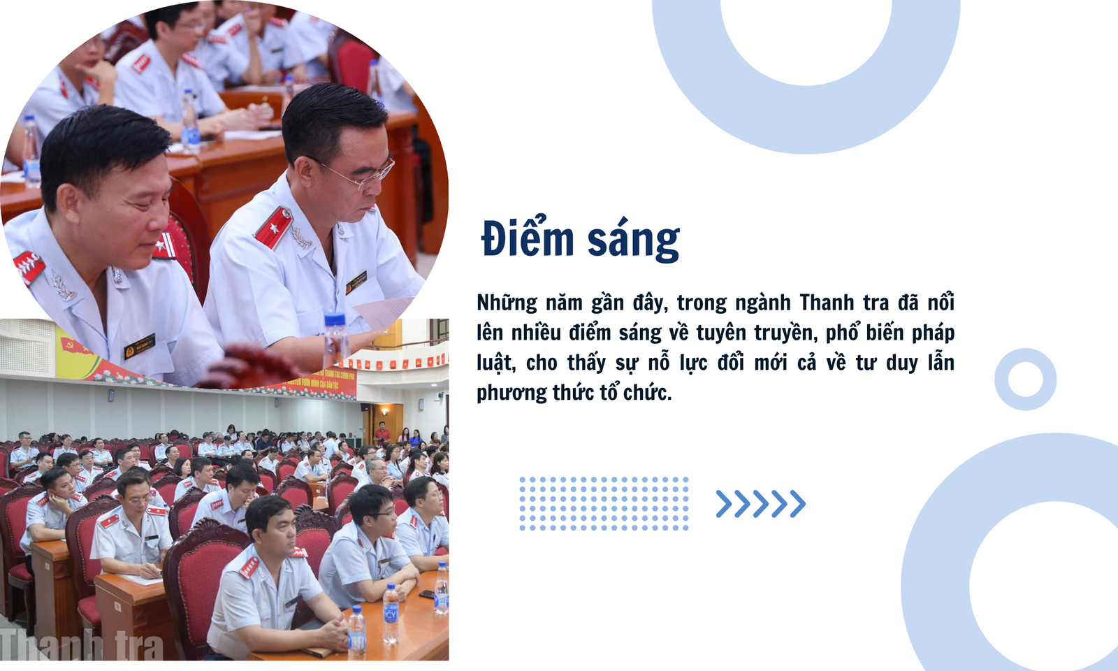 Bên cạnh đó, Thanh tra Chính phủ xác định việc tuyên truyền, phổ biến kinh nghiệm quốc tế về thanh tra, giải quyết khiếu nại, tố cáo và phòng, chống tham nhũng, tiêu cực là một nội dung quan trọng, nhằm mở rộng góc nhìn, tiếp thu có chọn lọc các mô hình, cách làm hiệu quả của các quốc gia, tổ chức quốc tế.