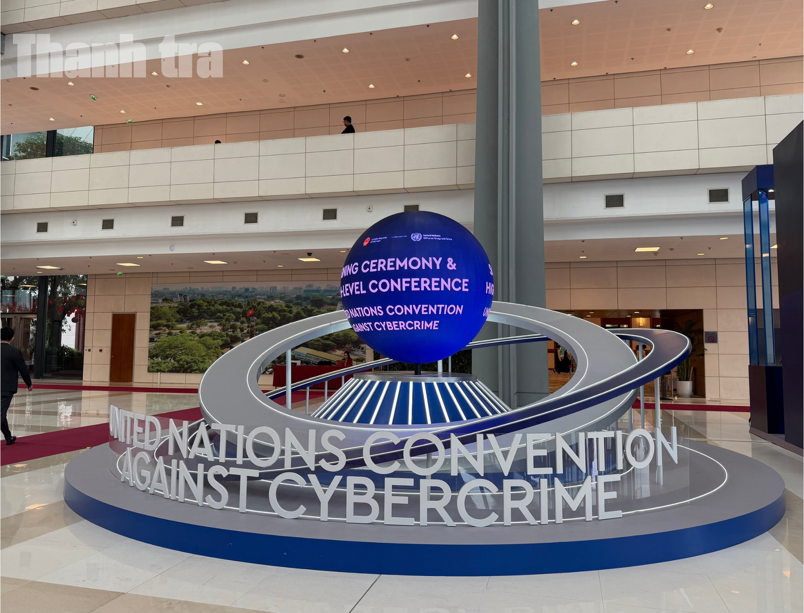 Không gian trưng bày tại Trung tâm Hội nghị quốc gia - nơi tổ chức Lễ mở ký Công ước Hà Nội. Ảnh: Bảo Anh