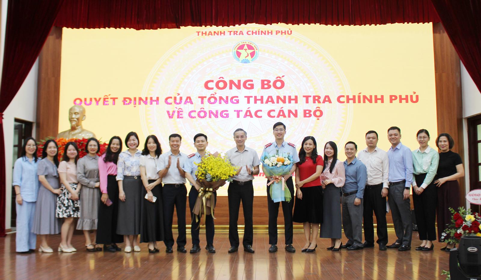 Tập thể Văn phòng Thanh tra Chính phủ tặng hoa và chụp ảnh lưu niệm cùng tân Phó Cục trưởng Cục VI Vũ Thiết Hoàng. Ảnh: LP