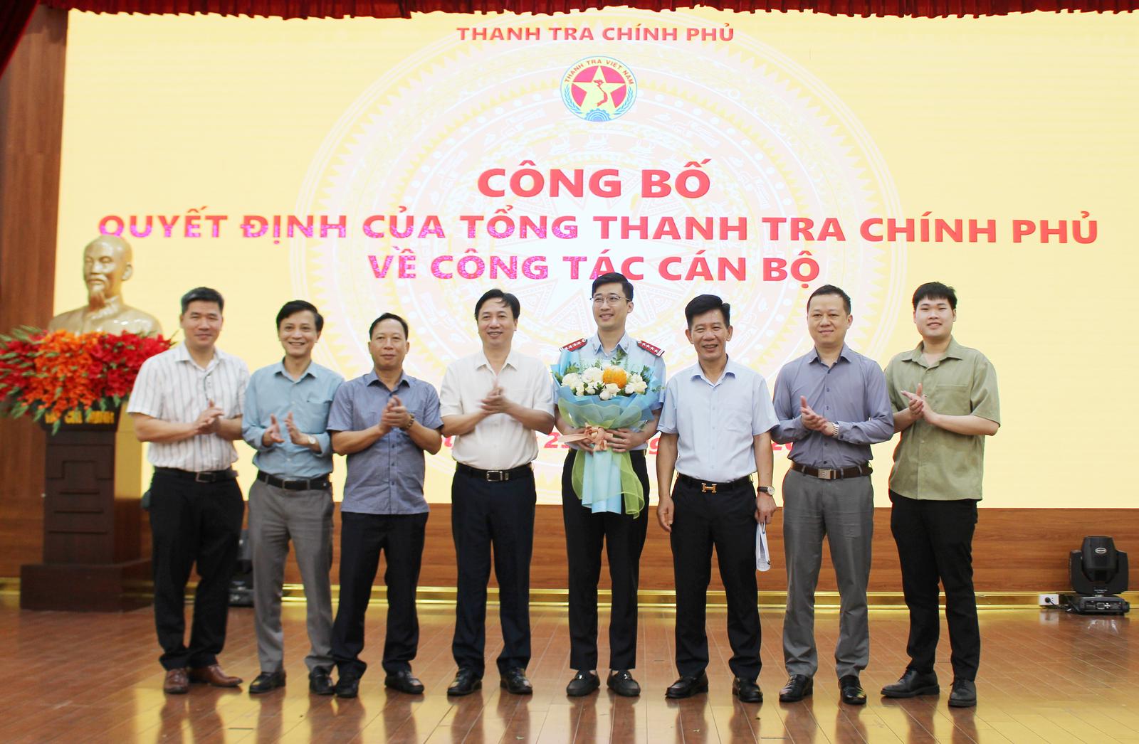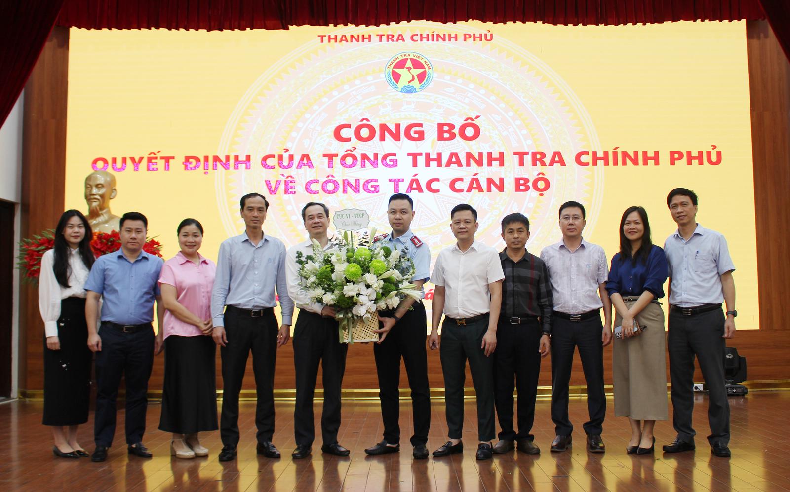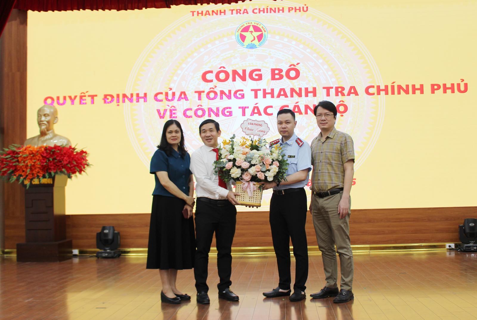 Lãnh đạo Văn phòng Thanh tra Chính phủ tặng hoa chúc mừng tân Phó Cục trưởng Cục VI Vũ Thiết Hoàng. Ảnh: LP