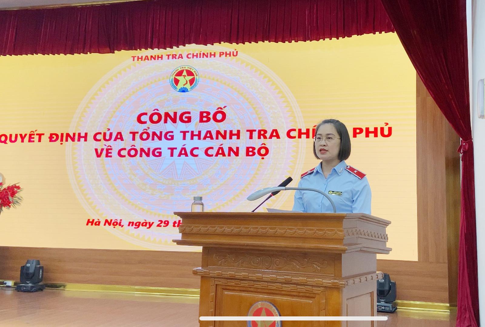 Phó Bí thư Đảng ủy Thanh tra Chính phủ bày tỏ tin tưởng, với bản lĩnh chính trị vững vàng, kinh nghiệm công tác và sự ủng hộ của tập thể, các cán bộ được bổ nhiệm sẽ nhanh chóng tiếp cận công việc, hoàn thành tốt nhiệm vụ trên các lĩnh vực tổ chức cán bộ, kế hoạch - tài chính và thanh tra, giải quyết khiếu nại, tố cáo.