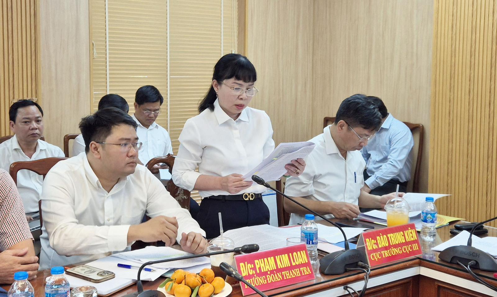 Bà Phạm Kim Loan, trưởng đoàn thanh tra công bố toàn văn Kết luận thanh tra số 56/KL-TTCP ngày 3/3/2025. Ảnh: NH