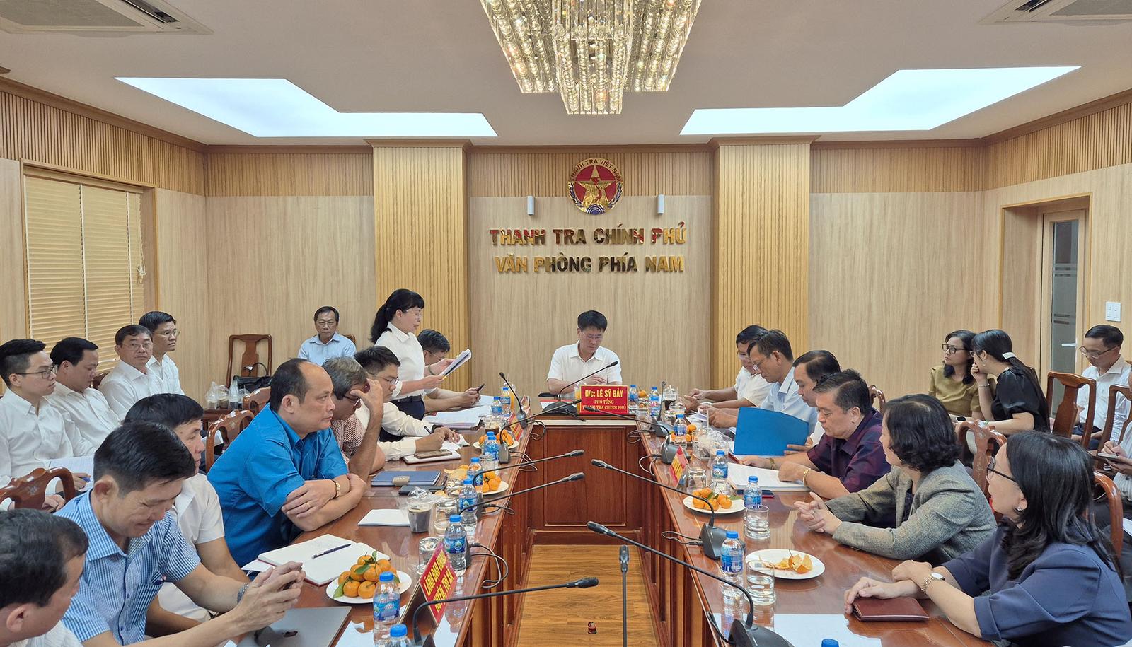 (Thanh tra) - Chiều 13/3, tại Thành phố Hồ Chí Minh, Thanh tra Chính phủ công bố kết luận thanh tra việc thực hiện pháp luật trong công tác thanh tra, tiếp công dân, giải quyết khiếu nại, tố cáo, phòng, chống tham nhũng; công tác quản lý, sử dụng đất đai, đầu tư xây dựng cơ bản trên địa bàn tỉnh Vĩnh Long, giai đoạn 2013-2020. Phó Tổng Thanh tra Lê Sỹ Bảy chủ trì buổi công bố.
