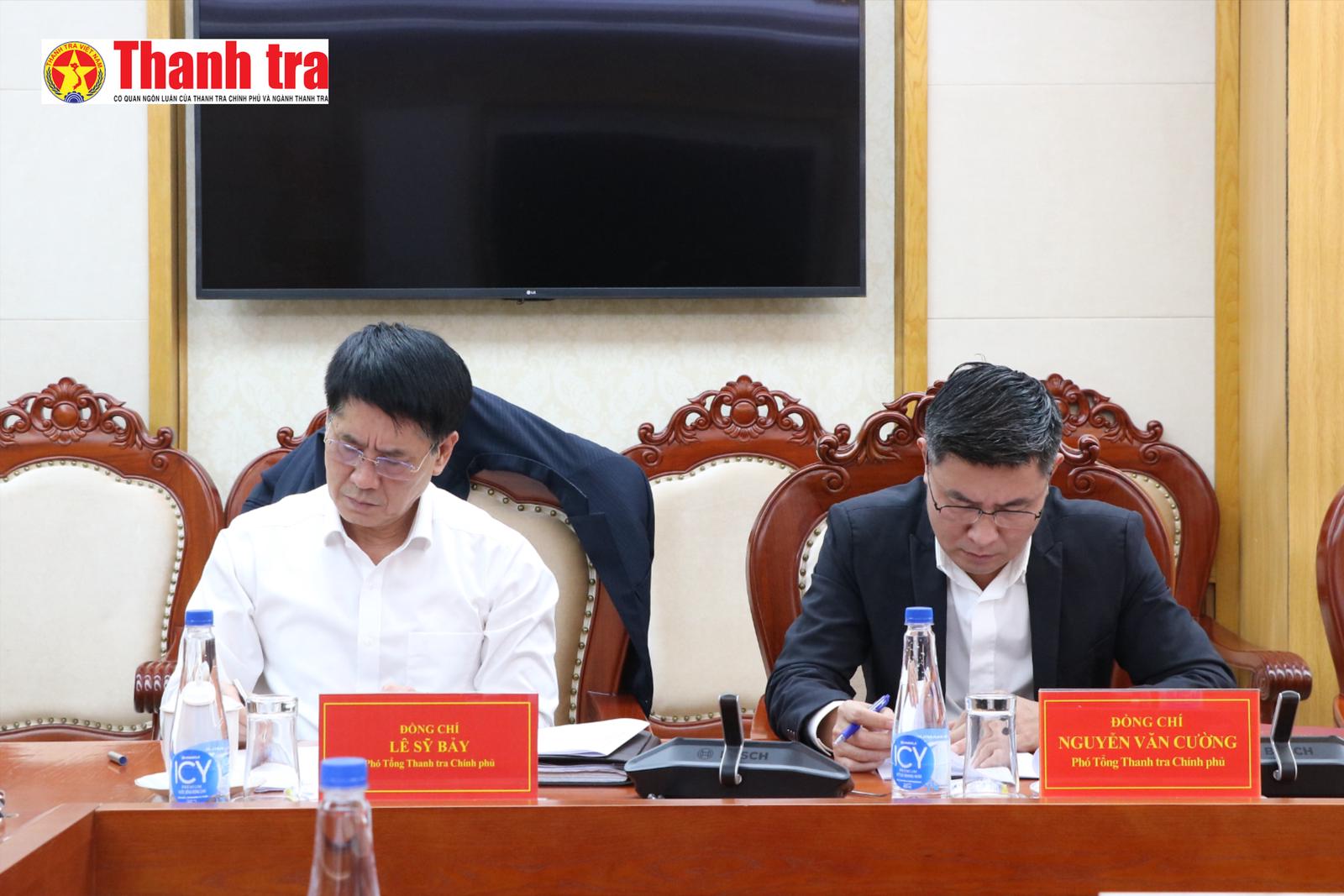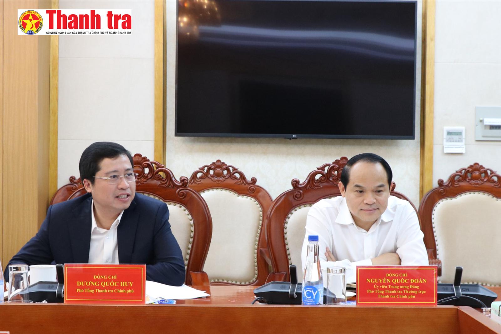 Phó Tổng Thanh tra Thường trực Nguyễn Quốc Đoàn và Phó Tổng Thanh tra Dương Quốc Huy tại cuộc họp. Ảnh: Đông Hà
