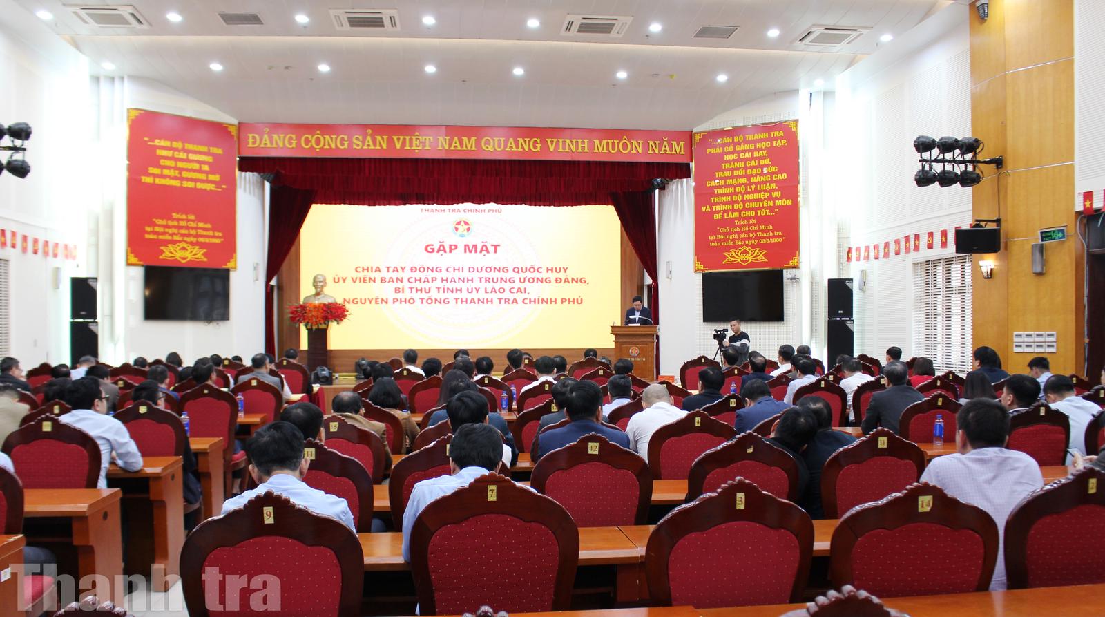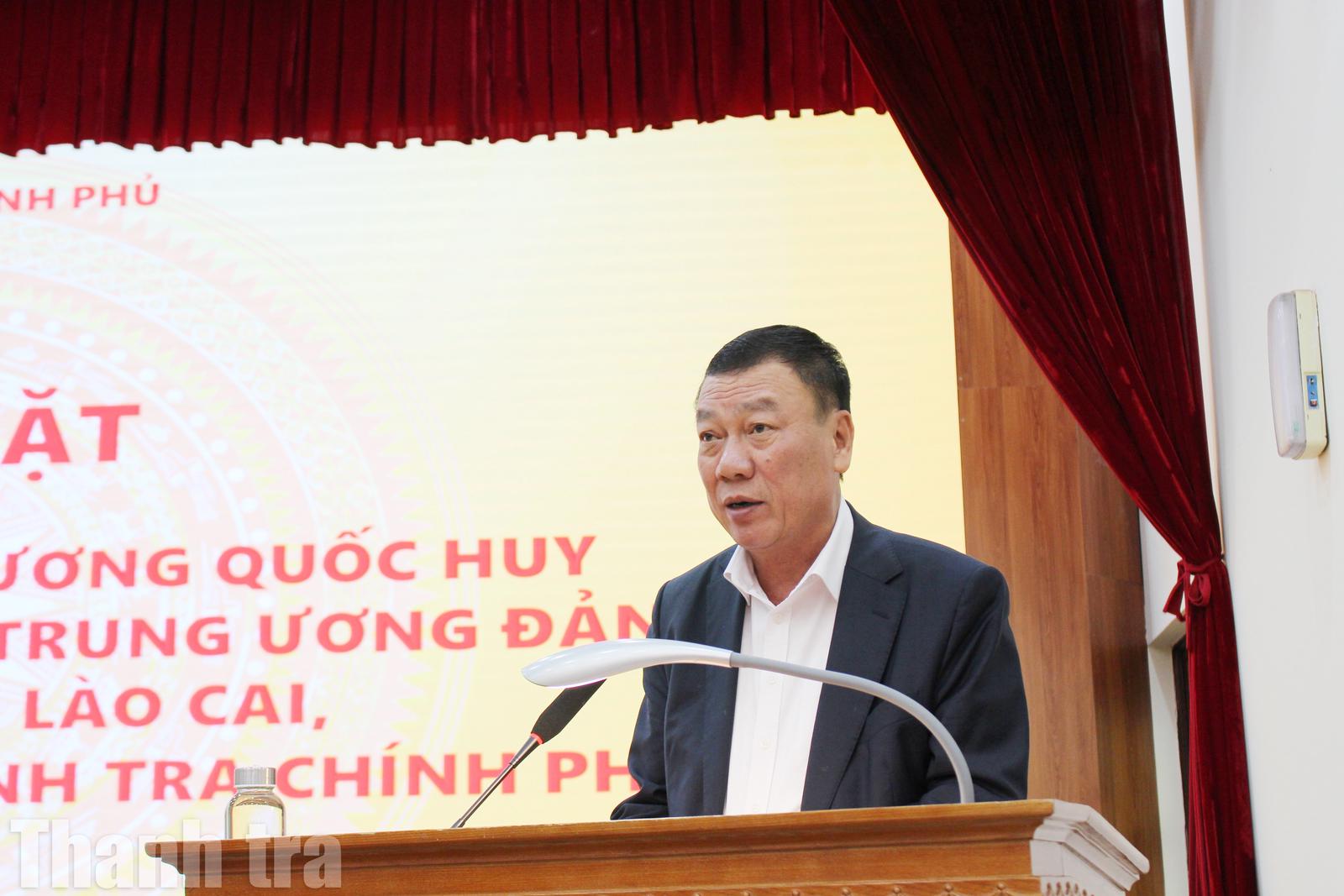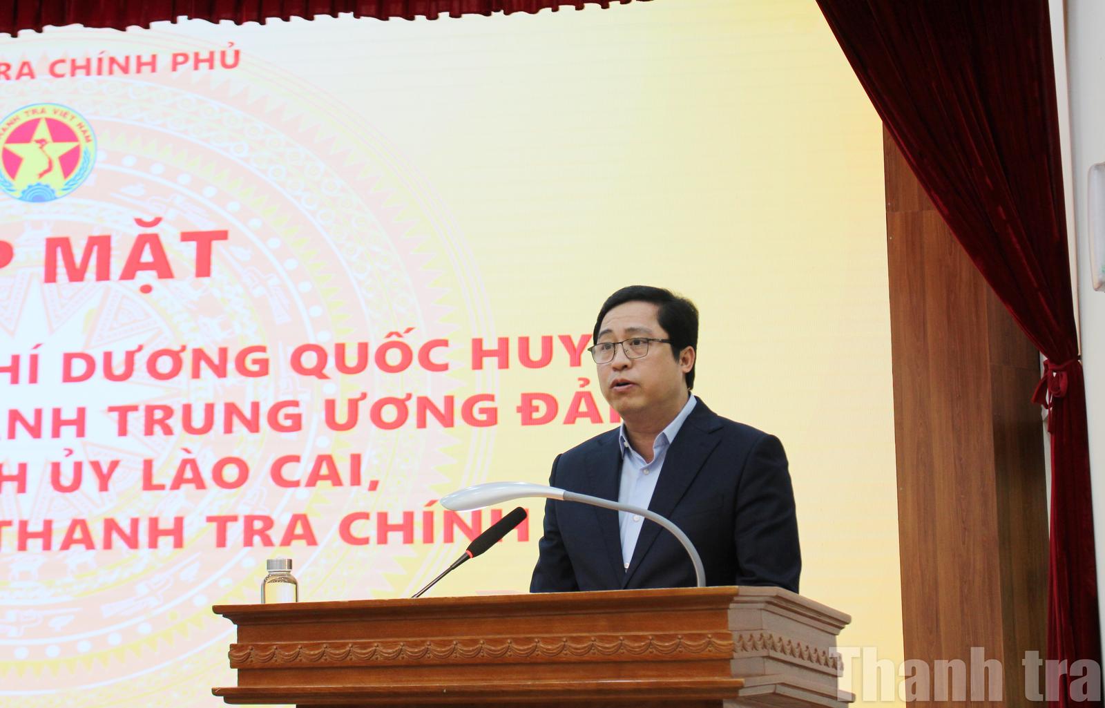 Phát biểu tại buổi gặp mặt, Bí thư Tỉnh ủy Lào Cai Dương Quốc Huy bày tỏ xúc động trước tình cảm, sự quan tâm và những lời chúc tốt đẹp của lãnh đạo Thanh tra Chính phủ cùng toàn thể cán bộ, công chức, viên chức ngành Thanh tra.