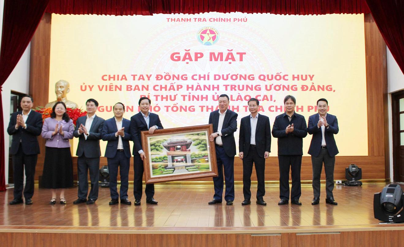 (Thanh tra) - Chiều 10/3, tại Hà Nội, Thanh tra Chính phủ tổ chức buổi gặp mặt, chia tay đồng chí Dương Quốc Huy, Ủy viên Trung ương Đảng, Phó Tổng Thanh tra Chính phủ, được Bộ Chính trị điều động, phân công giữ chức Bí thư Tỉnh ủy Lào Cai nhiệm kỳ 2025 – 2030.