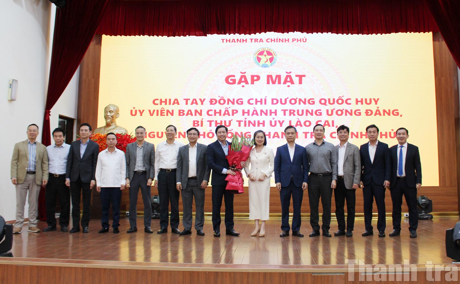 Phát biểu tại buổi gặp mặt, Tổng Thanh tra Chính phủ Đoàn Hồng Phong chúc mừng đồng chí Dương Quốc Huy được Bộ Chính trị tin tưởng điều động, phân công giữ chức Bí thư Tỉnh ủy Lào Cai. Theo Tổng Thanh tra Chính phủ, đây không chỉ là niềm vinh dự của cá nhân đồng chí Huy mà còn là niềm tự hào của Thanh tra Chính phủ và toàn ngành Thanh tra.
