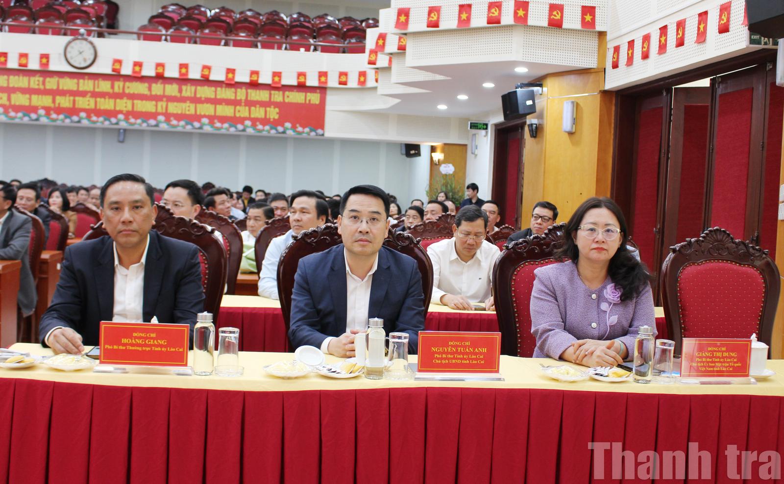 Cùng dự còn có lãnh đạo tỉnh Lào Cai gồm: Phó Bí thư Thường trực Tỉnh ủy Hoàng Giang; Phó Bí thư Tỉnh ủy, Chủ tịch UBND tỉnh Nguyễn Tuấn Anh; Phó Bí thư Tỉnh ủy, Chủ tịch Ủy ban MTTQ Việt Nam tỉnh Giàng Thị Dung.