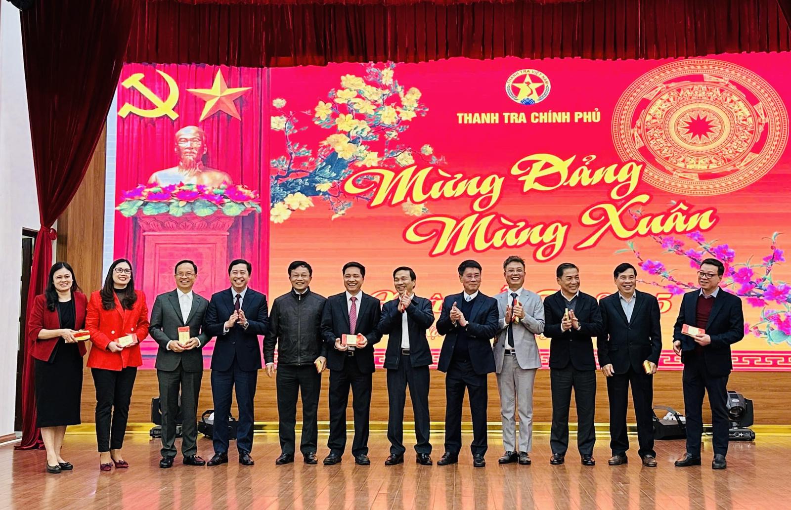 (Thanh tra) - Sáng ngày 3/2/2025 (tức 6/1 Âm lịch), Thanh tra Chính phủ tổ chức gặp mặt đầu Xuân, mừng Đảng, mừng Xuân Ất Tỵ năm 2025. Tổng Thanh tra Chính phủ Đoàn Hồng Phong cùng các Phó Tổng Thanh tra: Bùi Ngọc Lam, Lê Sỹ Bảy, Dương Quốc Huy, Nguyễn Văn Cường, Lê Tiến Đạt tham dự buổi gặp mặt.