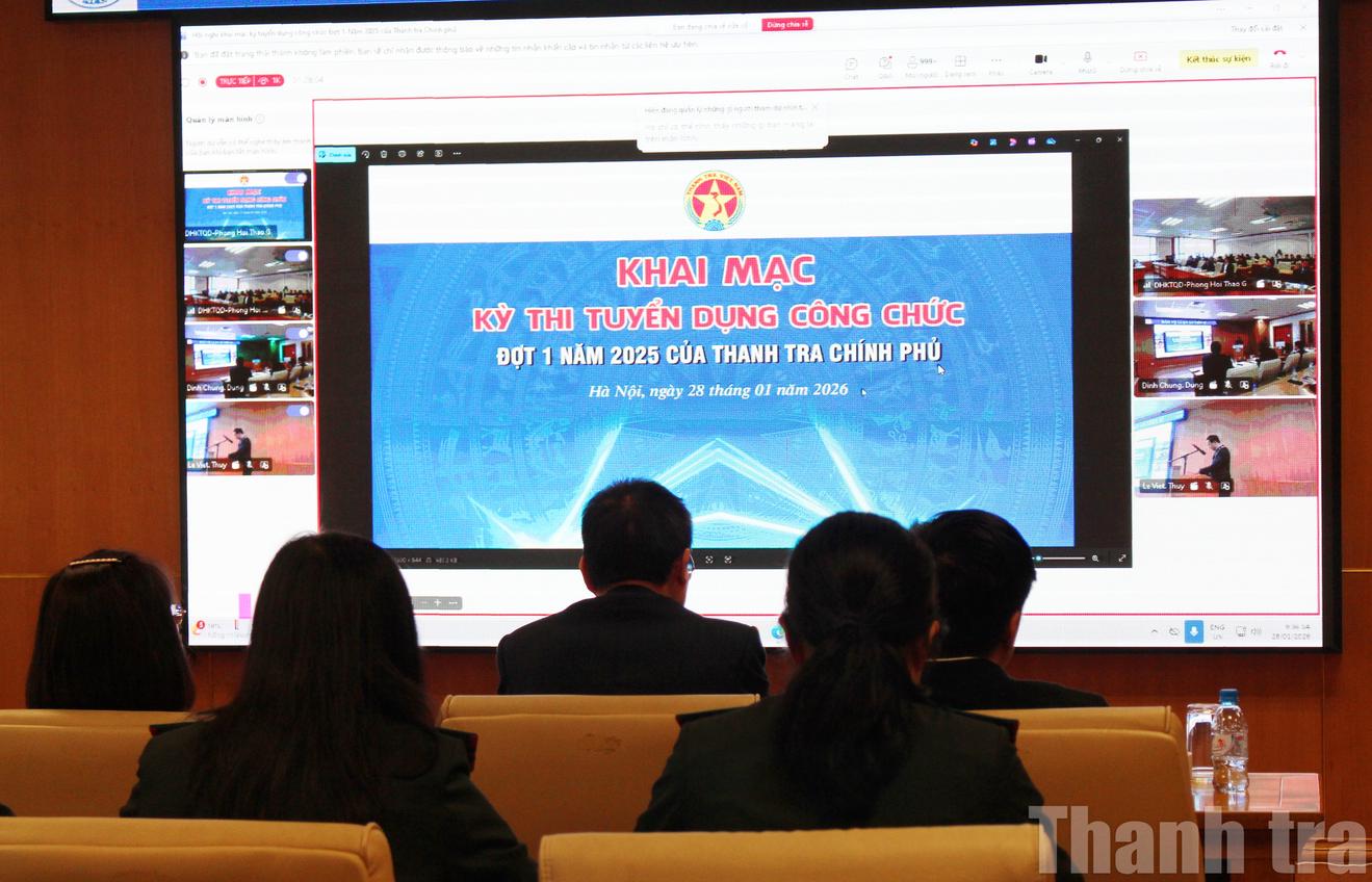 Dự lễ khai mạc tại điểm cầu trung tâm (trực tiếp) có ông Lê Tiến Đạt, Phó Tổng Thanh tra Chính phủ, Chủ tịch Hội đồng tuyển dụng công chức cơ quan Thanh tra Chính phủ; bà Nguyễn Thị Thu Huyền, Vụ trưởng Vụ Tổ chức cán bộ, Phó Chủ tịch Hội đồng tuyển dụng; cùng các thành viên Hội đồng tuyển dụng; Ban Giám sát kỳ tuyển dụng; Ban Đề thi, Ban Coi thi, Ban Kiểm tra phiếu dự tuyển, Tổ Thư ký giúp việc.