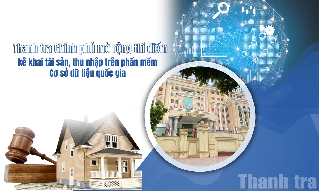 (Thanh tra) - Thanh tra Chính phủ vừa quyết định mở rộng phạm vi thí điểm kê khai tài sản, thu nhập trên phần mềm thuộc Cơ sở dữ liệu quốc gia, nhằm tiếp tục rà soát, hoàn thiện hệ thống trước khi triển khai trên diện rộng theo Đề án được Thủ tướng Chính phủ phê duyệt.