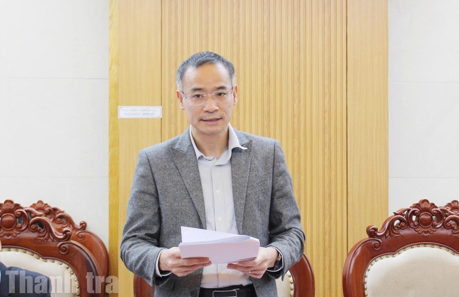 Vụ trưởng Vụ Kế hoạch - Tài chính Lê Quang Linh báo cáo tại hội nghị. Ảnh: HH