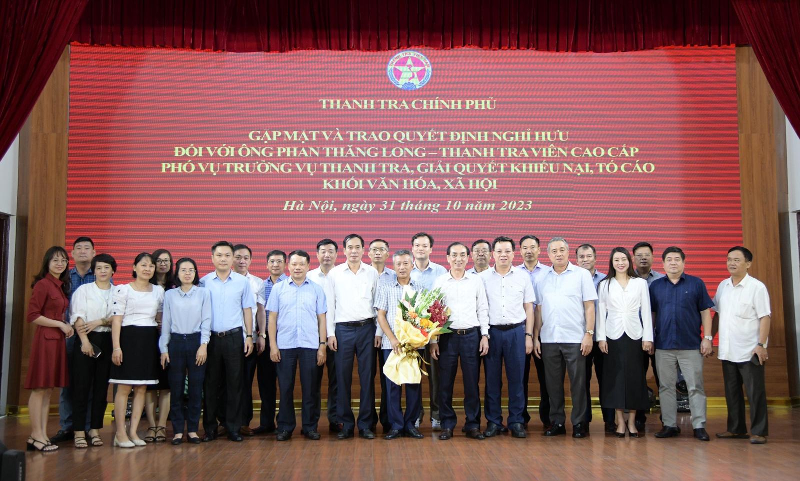 Phát biểu tại buổi gặp mặt, Phó Tổng Thanh tra Chính phủ Đặng Công Huẩn ghi nhận, biểu dương những đóng góp của ông Phan Thăng Long trong suốt thời gian công tác tại Thanh tra Chính phủ.