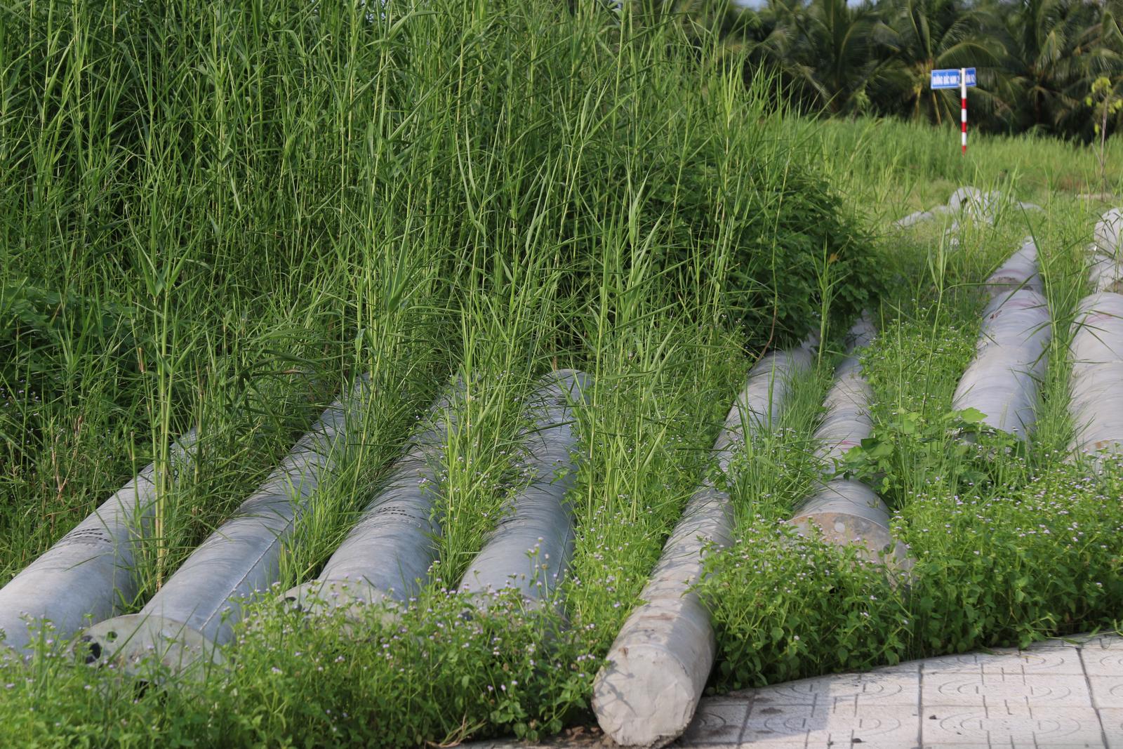 Cỏ cây dại mọc um tùm tại Dự án Khu tái định cư Đông Á - Phú Nhuận, TP Bến Tre. Ảnh: Đình Thuyết