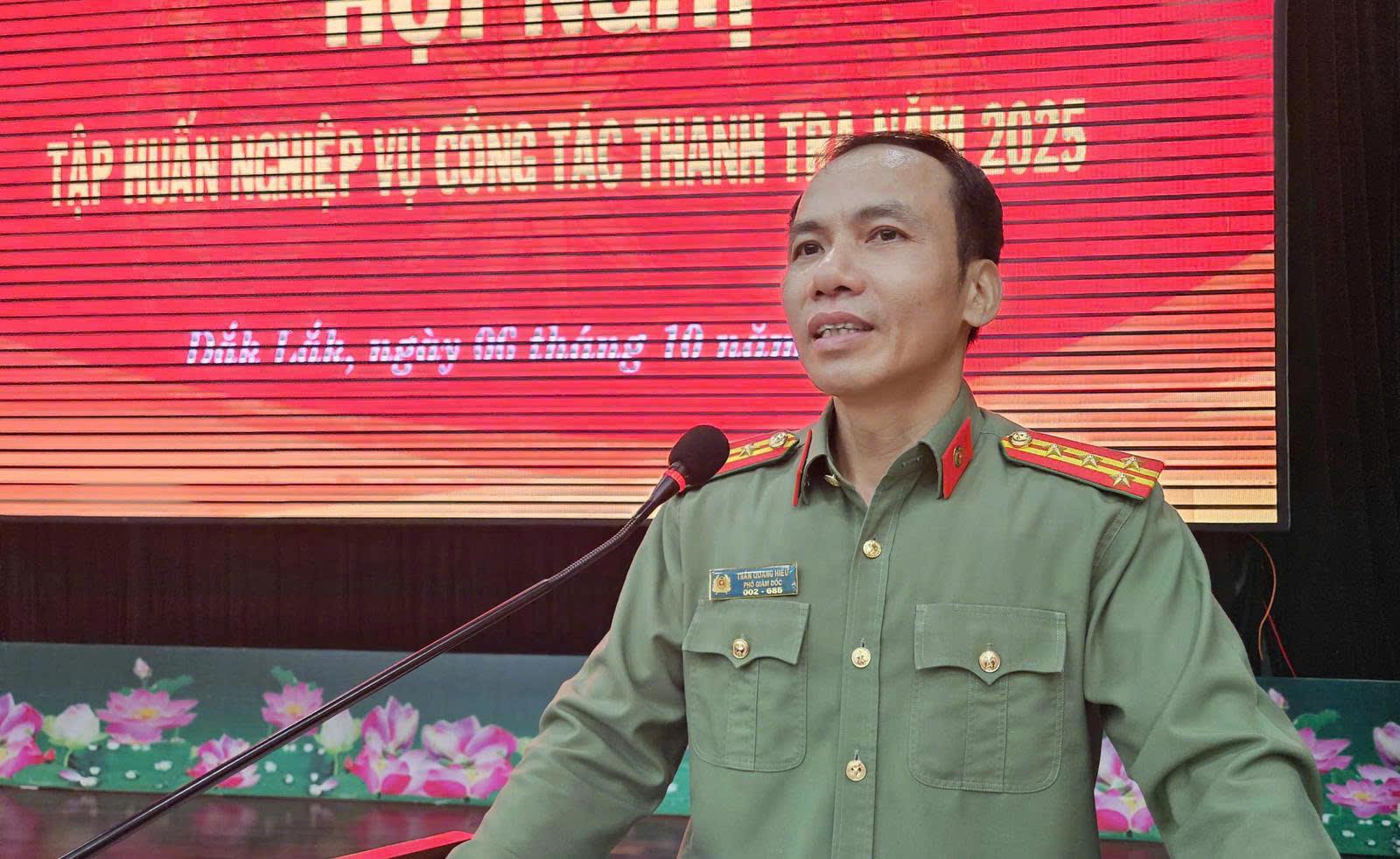 Đại tá Trần Quang Hiếu – Phó Giám đốc Công an tỉnh Đắk Lắk nhấn mạnh vai trò của Thanh tra trong giữ vững kỷ luật, kỷ cương toàn lực lượng. Ảnh: VC