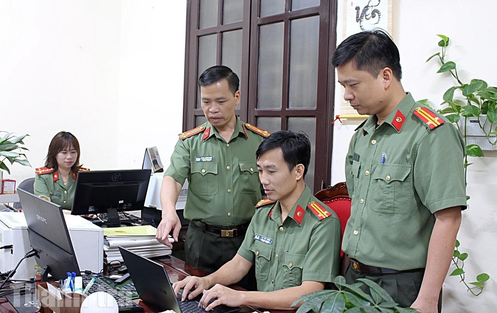 Cán bộ Thanh tra Công an tỉnh Ninh Bình trao đổi nghiệp vụ trên các nền tảng số, đảm bảo tiến độ và chất lượng công tác chuyên môn được giao. Ảnh: Trọng Tài