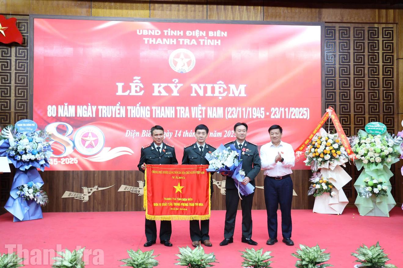 Thanh tra tỉnh Điện Biên được nhận Cờ thi đua xuất sắc của Chính phủ nhân dịp kỷ niệm 80 năm Ngày Truyền thống ngành Thanh tra Việt Nam, 55 năm thành lập Thanh tra Điện Biên. Ảnh: PV