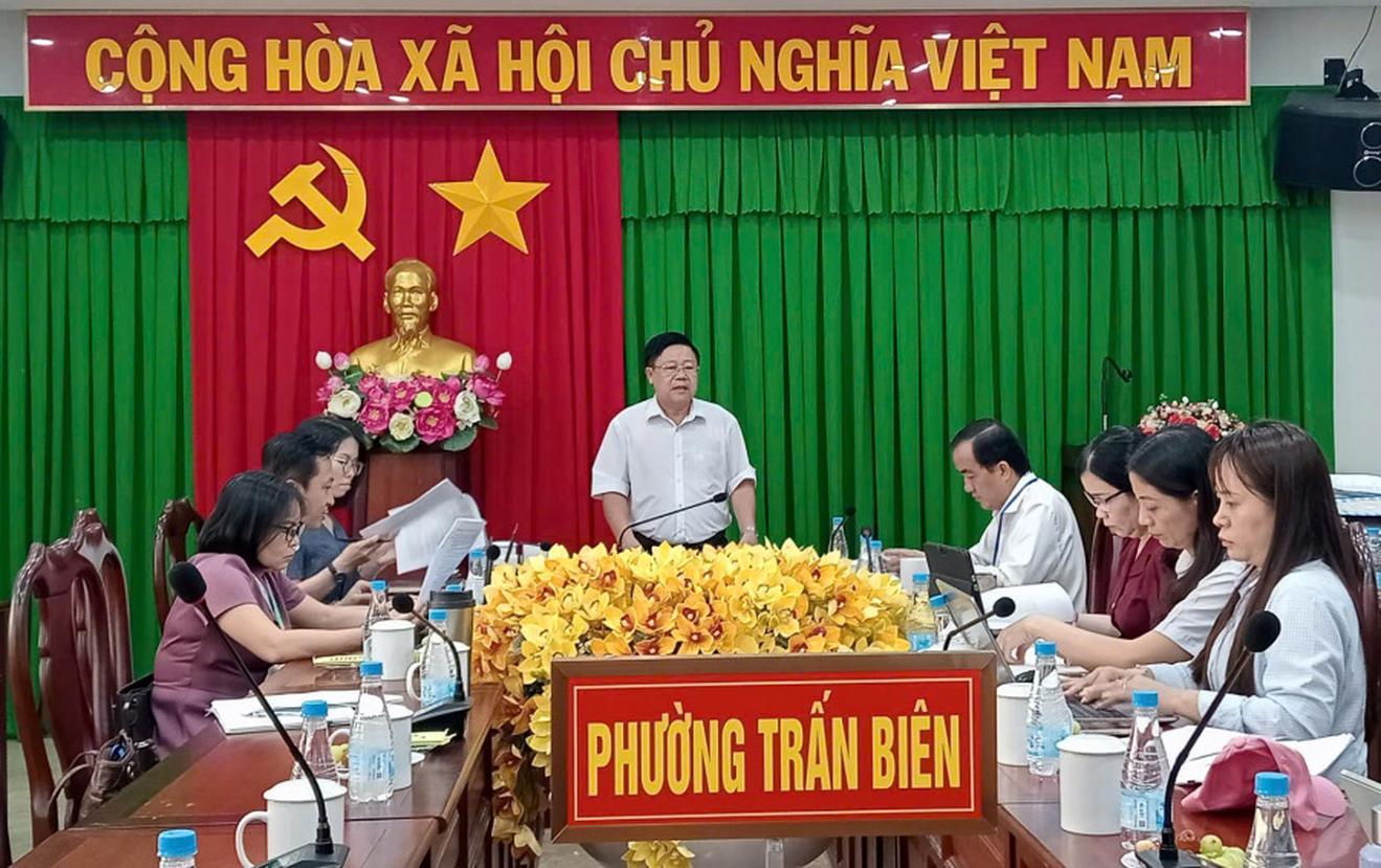 Thanh tra tỉnh Đồng Nai hướng dẫn công tác tiếp công dân và giải quyết khiếu nại, tố cáo tại UBND phường Trấn Biên. Ảnh: Thanh tra Đồng Nai