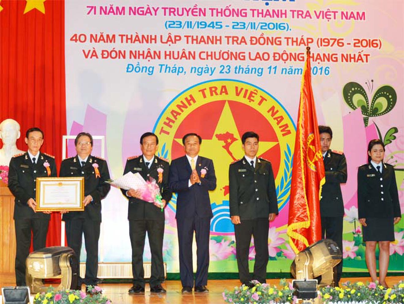 (Thanh tra) - Chiều 23/11, Thanh tra tỉnh Đồng Tháp tổ chức kỷ niệm 71 năm Ngày Truyền thống ngành Thanh tra Việt Nam, 40 năm thành lập ngành Thanh tra tỉnh Đồng Tháp và đón nhận Huân chương Lao động hạng Nhất.