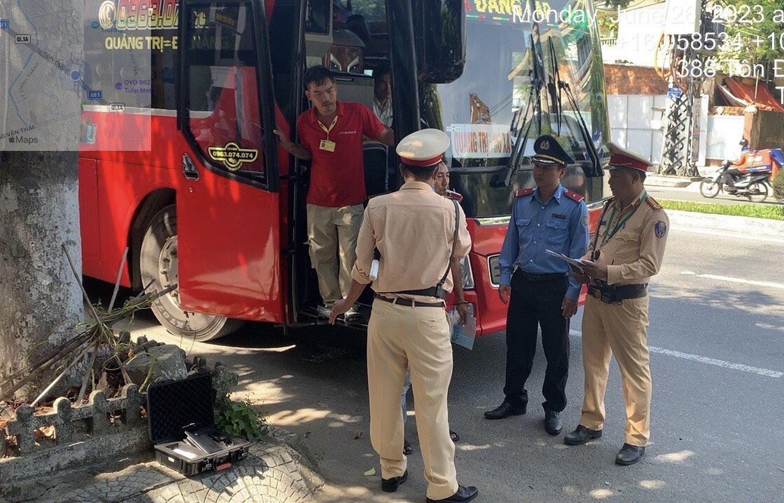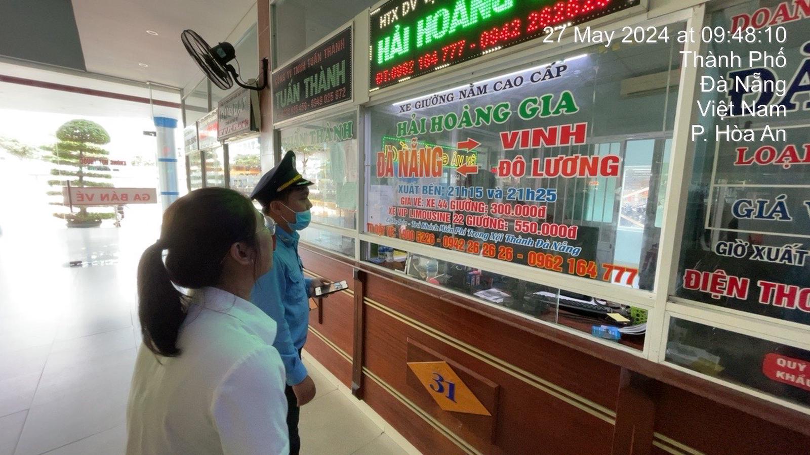 Thanh tra Sở GTVT Đà Nẵng kiểm tra xe vận tải hành khách. Ảnh: N.P