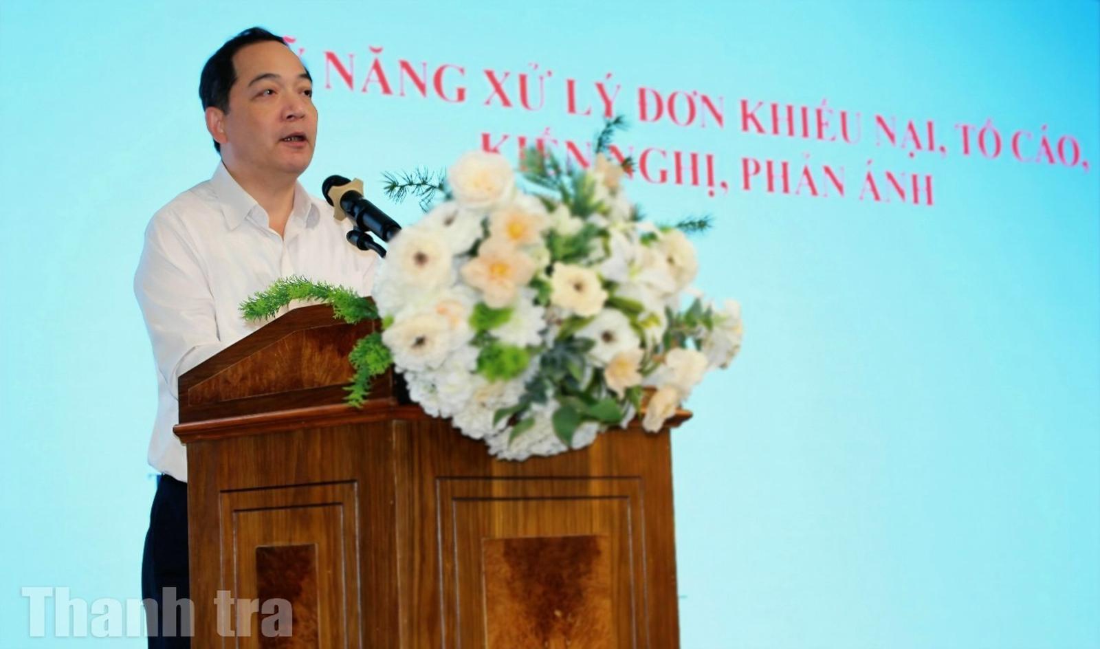 Tiến sỹ Nguyễn Huy Hoàng - Thanh tra viên cao cấp, Phó Hiệu trưởng Trường Cán bộ Thanh tra, Thanh tra Chính phủ trực tiếp truyền đạt các chuyên đề. Ảnh: Trọng Tài