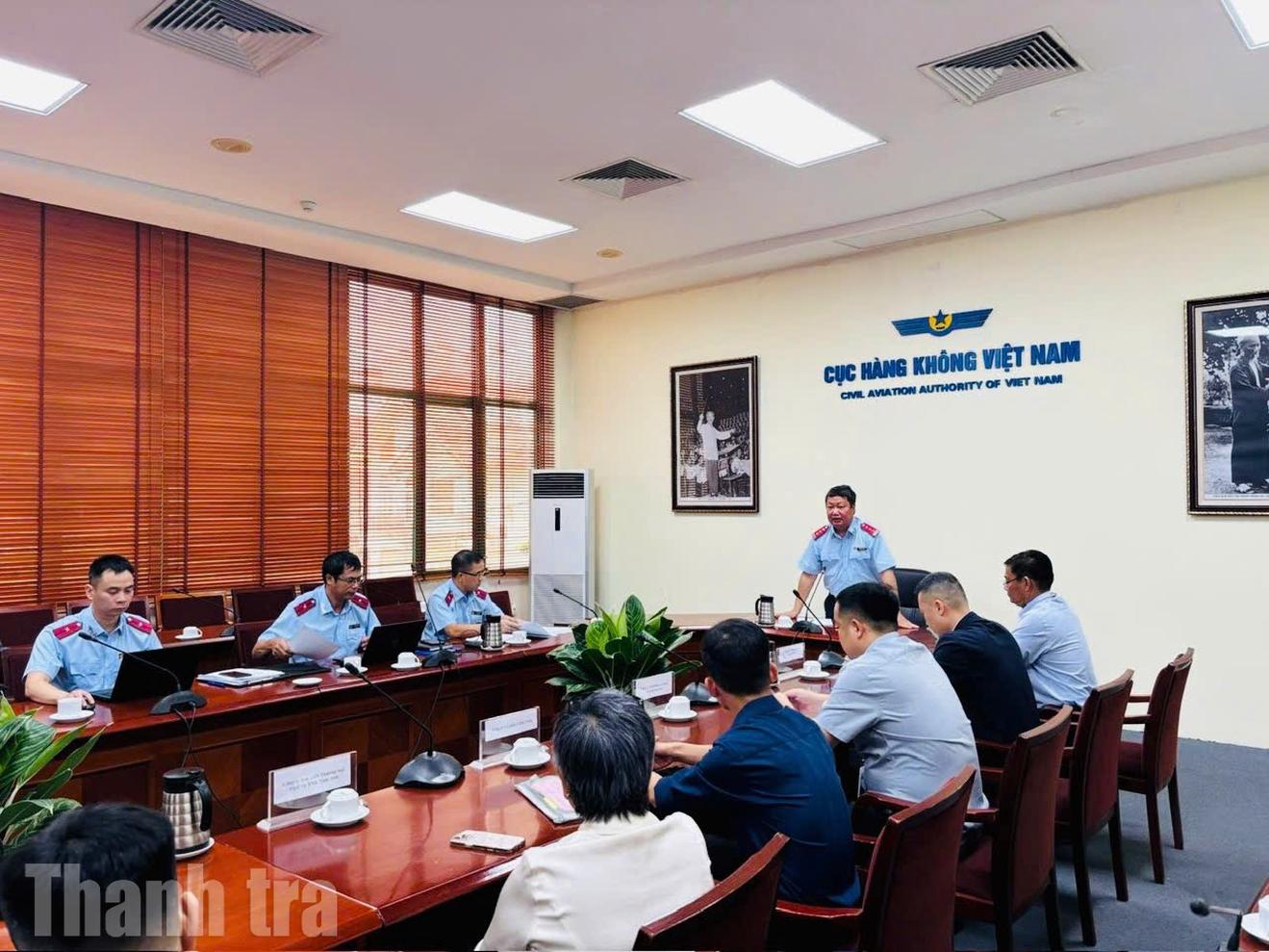 Thanh tra HKVN công bố quyết định thanh tra việc chấp hành pháp luật chuyên ngành đối với 6 tổ chức bảo dưỡng tàu bay, cánh quạt và trang thiết bị, ngày 23/3/2026. Ảnh: PV