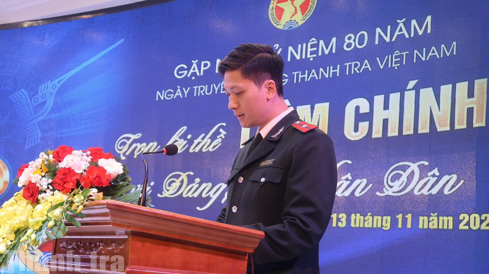 Đại diện cho thế hệ trẻ, Thanh tra viên Phòng Nghiệp vụ 5 Đặng Minh Nghĩa xúc động phát biểu: “Chúng tôi tự hào được khoác lên mình màu áo của ngành Thanh tra - ngành được ví như “tai mắt của trên, bạn của dưới”.
