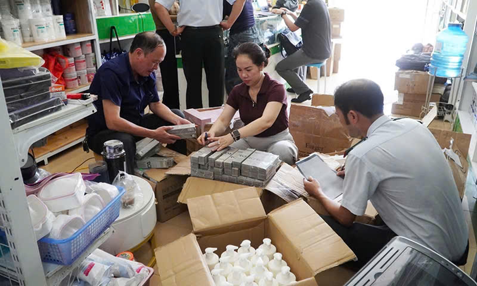 Đoàn liên ngành kiểm tra một cơ sở kinh doanh. Ảnh: BQB