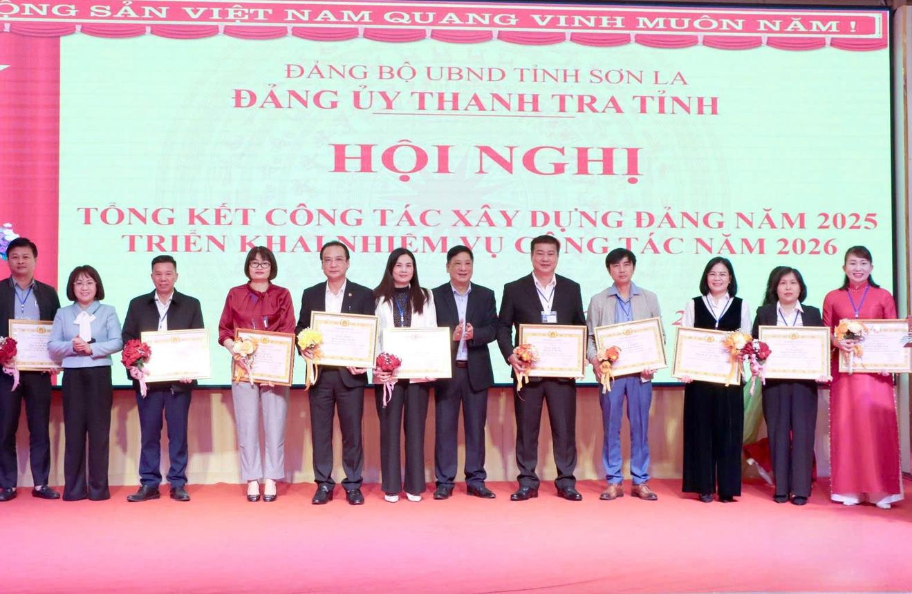 Ban Chấp hành Đảng bộ Thanh tra tỉnh Sơn La trao tặng giấy khen cho các đảng viên xuất sắc tại hội nghị triển khai nhiệm vụ công tác năm 2026. Ảnh: CTV