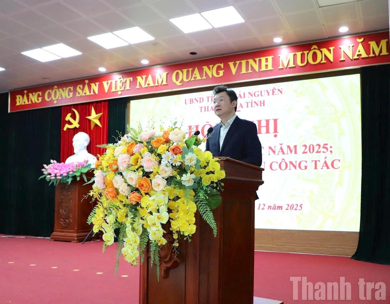 Chánh Thanh tra tỉnh Nguyễn Quốc Hữu phát biểu chỉ đạo tại hội nghị triển khai công tác năm 2026 của Thanh tra tỉnh Thái Nguyên. Ảnh: PV