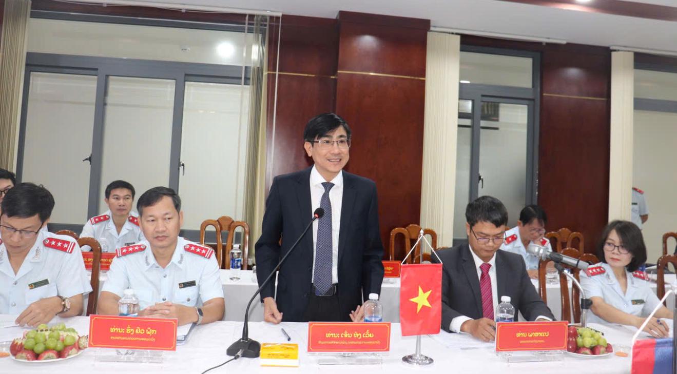 Đồng chí Trần Thắng Lợi, Ủy viên Ban Thường vụ Thành ủy, Chánh Thanh tra thành phố phát biểu tại buổi Thanh tra thành phố Đà Nẵng tiếp và làm việc với Đoàn Thanh tra Nhà nước tỉnh Sekong (Lào). Ảnh: Thanh Nhung