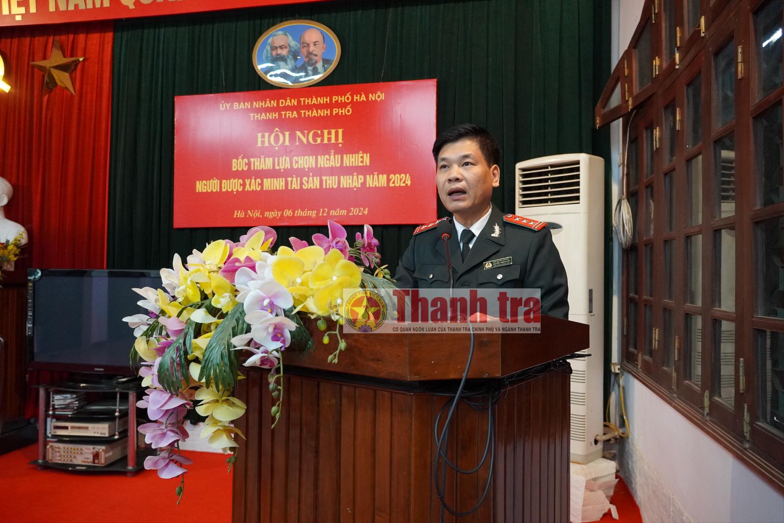 Tại buổi bốc thăm lựa chọn ngẫu nhiên người được xác minh tài sản, thu nhập năm 2024, Thanh tra thành phố Hà Nội mời đại diện Uỷ ban Kiểm tra Thành uỷ, Uỷ ban Mặt trận Tổ quốc thành phố Hà Nội và đại diện lãnh đạo 24 đơn vị tới dự và chứng kiến.