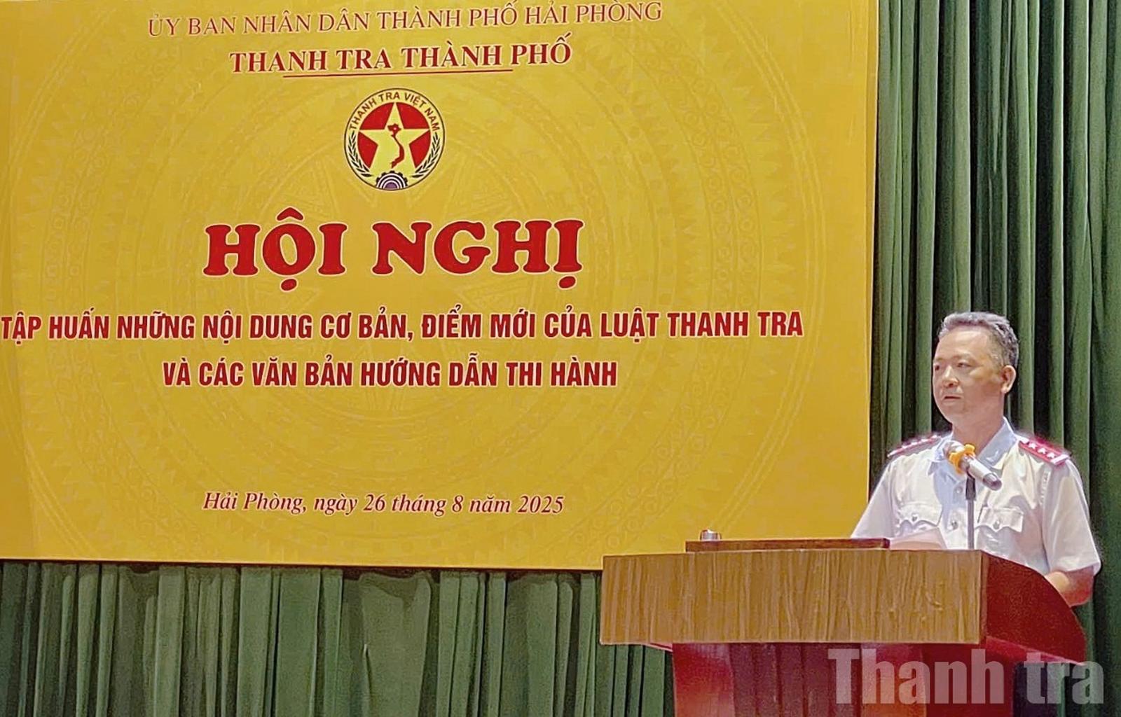 (Thanh tra) - Sáng 26/8, Thanh tra thành phố Hải Phòng tổ chức hội nghị “Tập huấn những nội dung cơ bản, điểm mới của Luật Thanh tra năm 2025 và các văn bản hướng dẫn thi hành”.