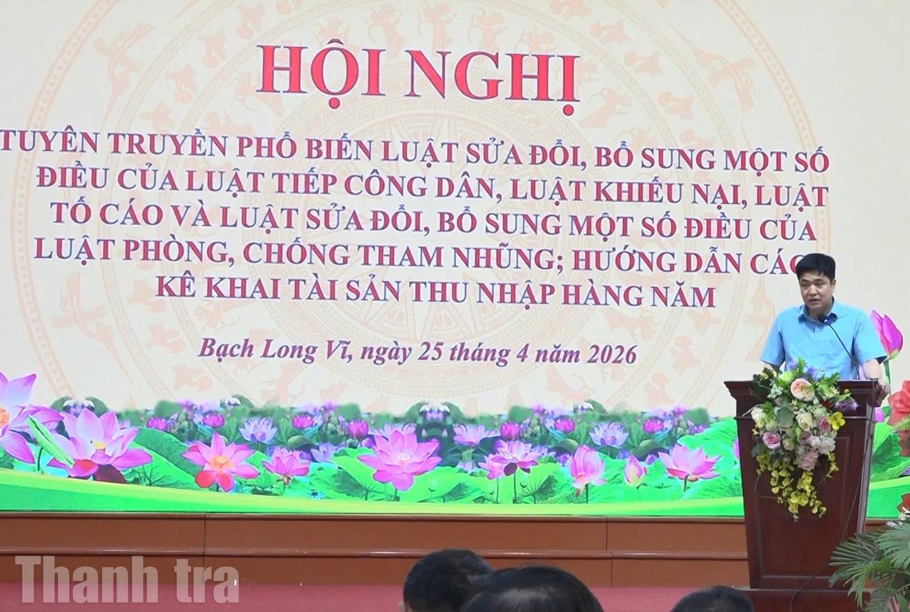 (Thanh tra) - Ngày 25/4/2026, thực hiện Quyết định số 209/QĐ-TTTP ngày 16/4/2026 và Kế hoạch số 21/KH-TTTP, Thanh tra thành phố Hải Phòng tổ chức hoạt động tuyên truyền, hướng dẫn nghiệp vụ cho cán bộ, công chức tại đặc khu Bạch Long Vĩ trong khuôn khổ chuyến công tác từ ngày 24/4 đến 26/4/2026.