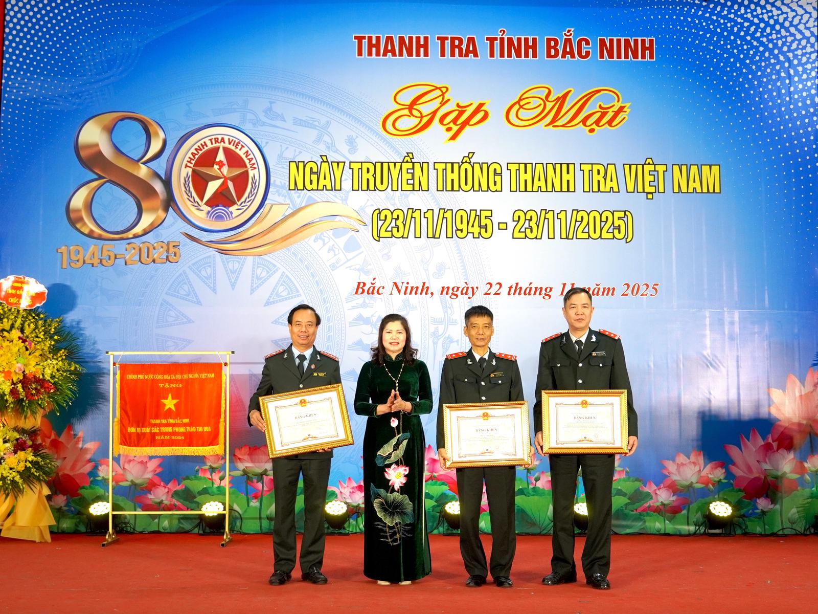 Đồng thời, Thanh tra tỉnh cũng nhận Bằng khen của Chủ tịch UBND tỉnh về thành tích trong công tác phòng, chống tham nhũng giai đoạn 2020–2025. Thanh tra tỉnh Bắc Ninh trao tặng Giấy khen của Chánh Thanh tra cho những cán bộ có nhiều nỗ lực, đóng góp tích cực vào hoạt động của cơ quan trong năm qua.
