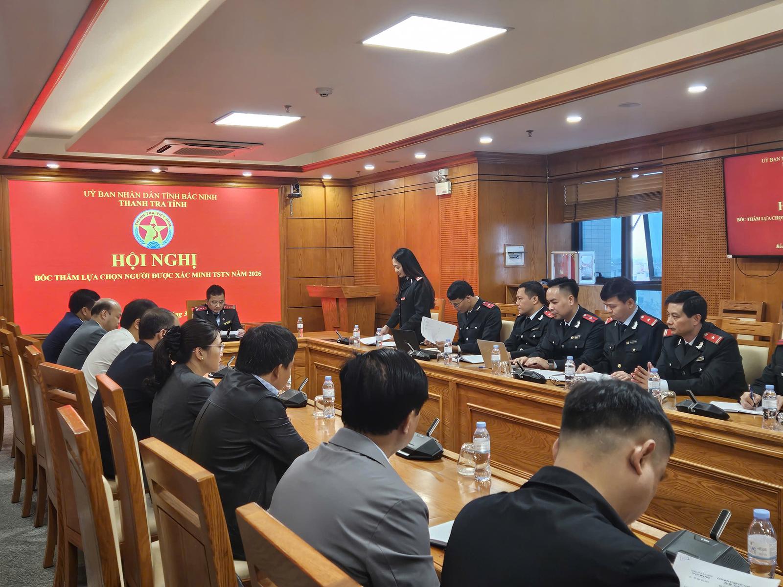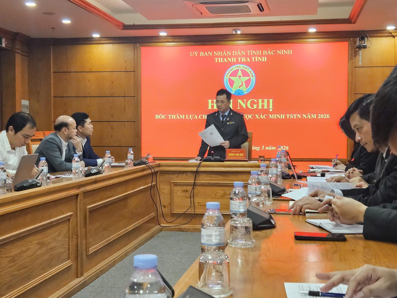 (Thanh tra) - Thanh tra tỉnh Bắc Ninh vừa tổ chức bốc thăm lựa chọn ngẫu nhiên người được xác minh tài sản, thu nhập năm 2026, dưới sự chủ trì của ông Hoàng Anh Đức, Phó Chánh Thanh tra tỉnh Bắc Ninh.