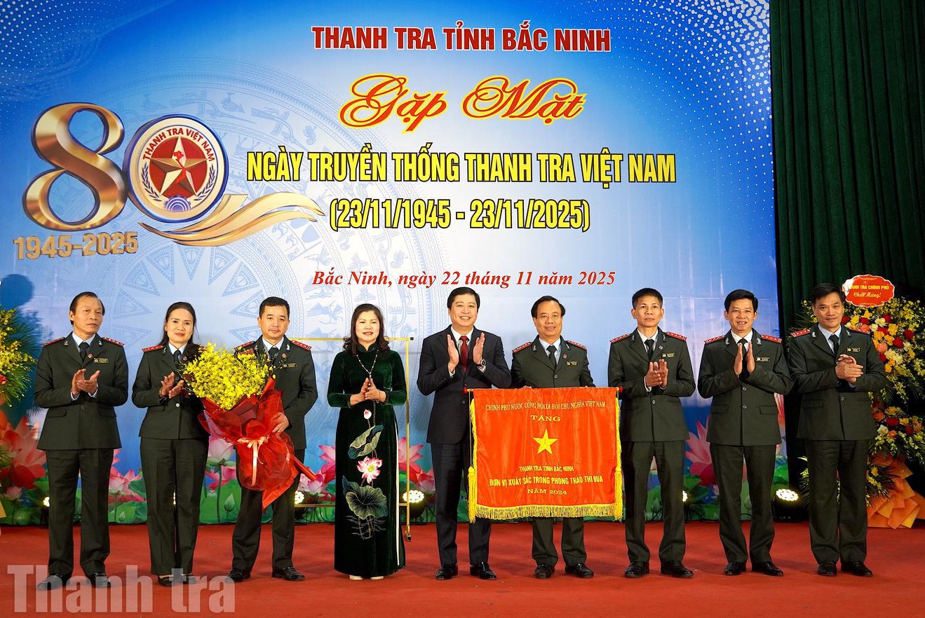 Phó Tổng Thanh tra Chính phủ Dương Quốc Huy trao Cờ thi đua của Chính phủ cho Thanh tra tỉnh Bắc Ninh. Ảnh: Hoàng Long