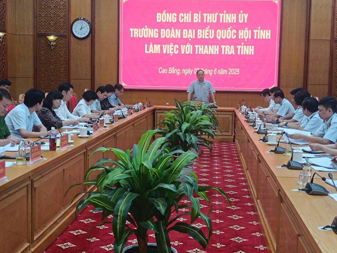 Bí thư Tỉnh uỷ Cao Bằng Quản Minh Cường làm việc với Thanh tra tỉnh. Ảnh: Đ.V.V