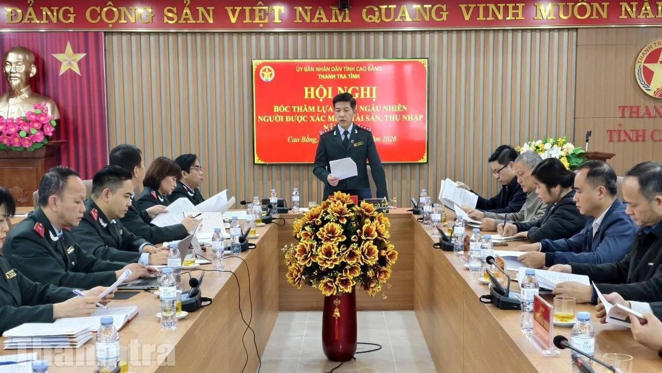 Thanh tra tỉnh Cao Bằng tổ chức hội nghị bốc thăm ngẫu nhiên người được xác minh tài sản, thu nhập năm 2026. Ảnh: Kim Dung