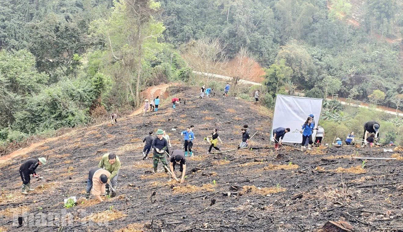Trong không khí sôi nổi đầu xuân, màu áo công sở hòa cùng màu đất đồi, những hàng keo non được trồng ngay ngắn, mở ra kỳ vọng về một vùng đồi xanh tốt trong những năm tới.