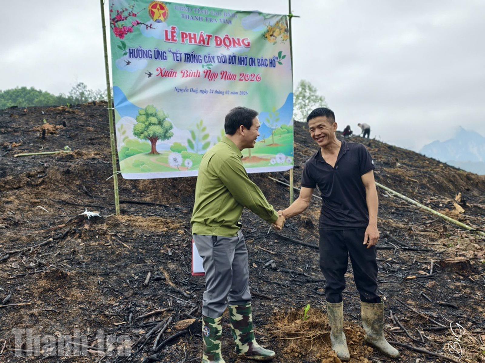 (Thanh tra) - Hưởng ứng lời kêu gọi “Tết trồng cây đời đời nhớ ơn Bác Hồ”, sáng 24/2/2026 (mùng 8 tháng Giêng, năm Bính Ngọ), Thanh tra tỉnh Cao Bằng tổ chức Lễ phát động Tết trồng cây xuân Bính Ngọ tại xóm Khuổi Quân, xã Nguyễn Huệ, đồng thời trao tặng 1.500 cây keo cho 2 hộ dân có hoàn cảnh khó khăn trên địa bàn.