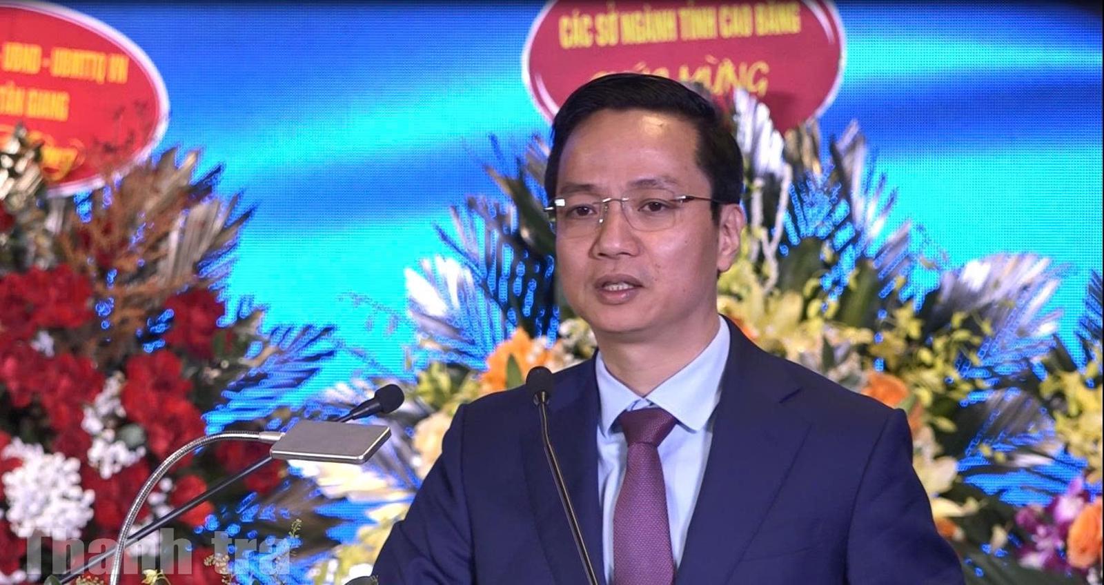 Đồng chí Lê Hải Hòa, Phó Bí thư Tỉnh ủy, Chủ tịch UBND tỉnh Cao Bằng phát biểu chúc mừng tại buổi lễ